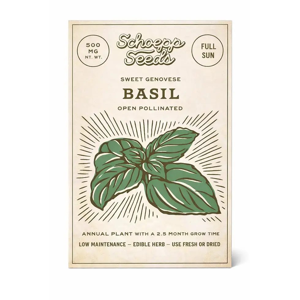 Basil Heirloom Seed Packets, Genovese Sweet Herb